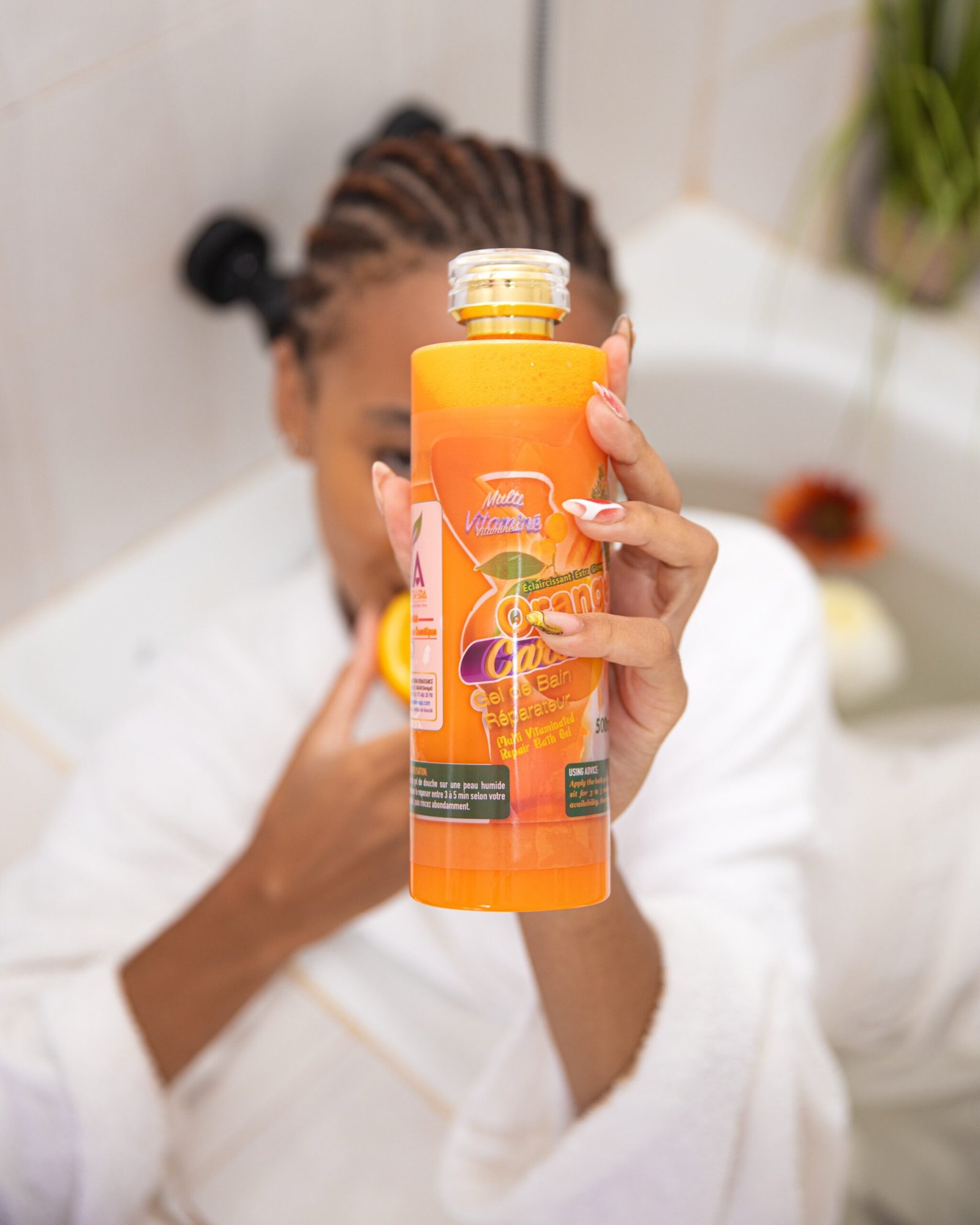 Ingrédients: Aqua/water, mix soap artisanale, huile de citron, huile bio de curcuma, huile d’orange, extraits de carotte, huile de papaye, AHA